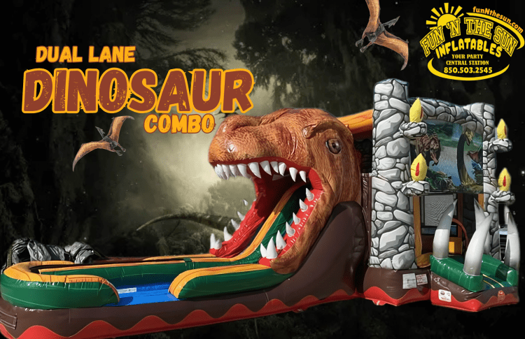 Large+Dual+Lane+Bounce+House+Slide+Dinosaur+Combo